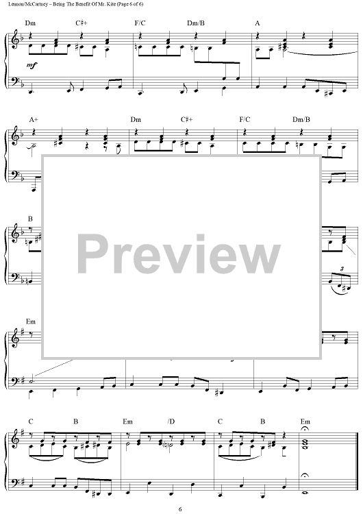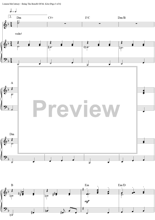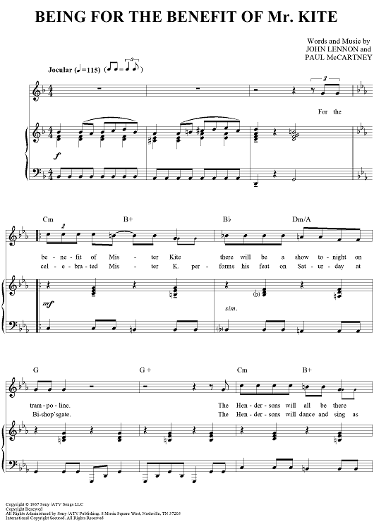 "Being for the Benefit of Mr. Kite" Sheet Music by The Beatles