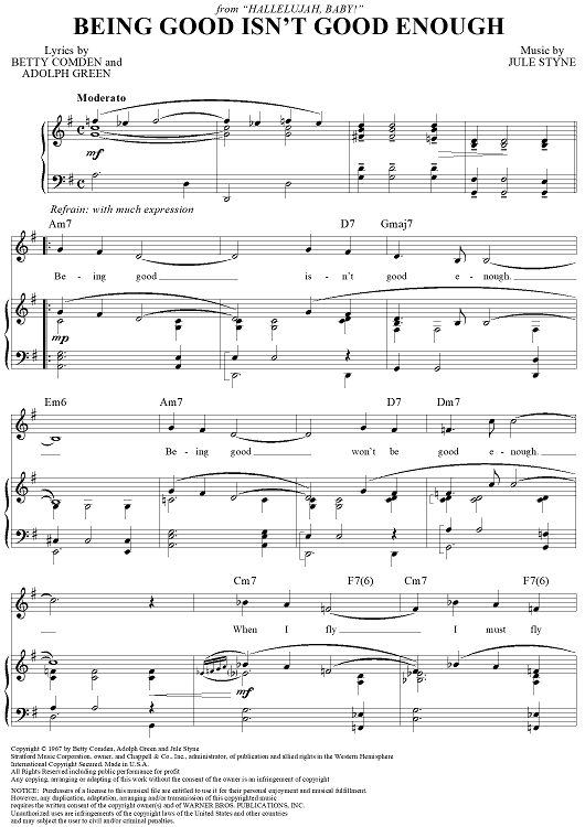 Digital Sheet Music for Being Good Isn't Good Enough by Jule Styne, Betty Comden, Adolph Green scored for Piano/Vocal/Chords; id:315077