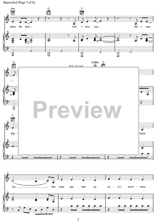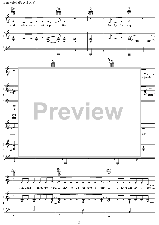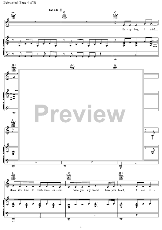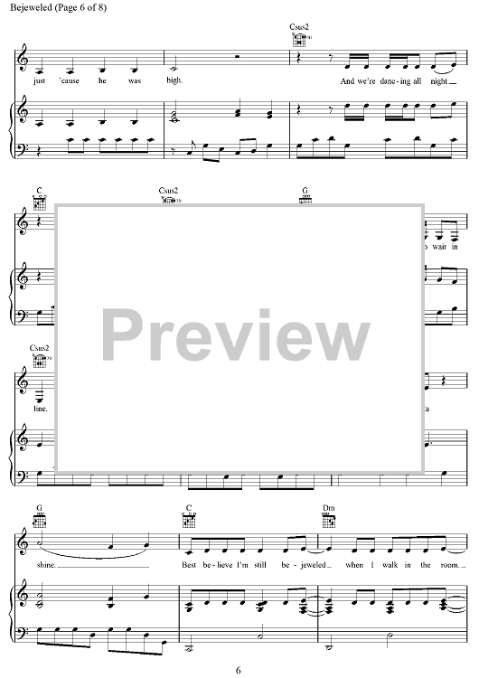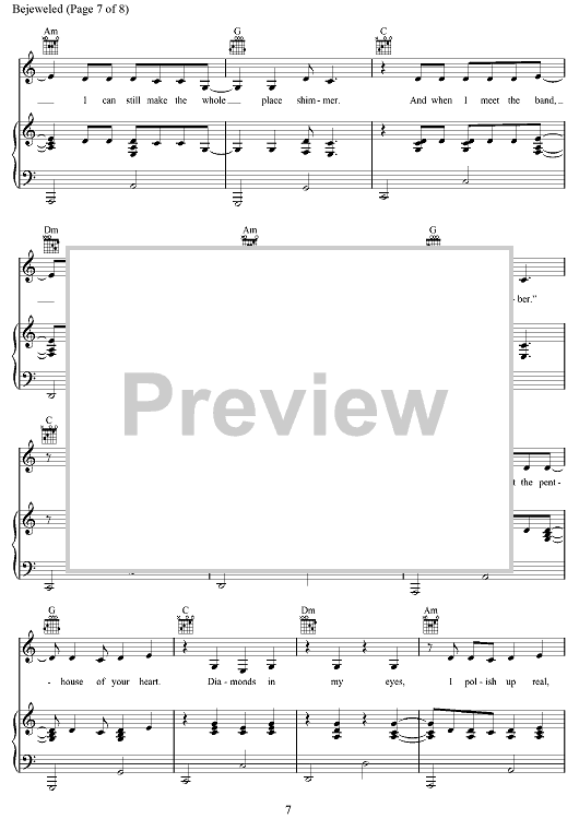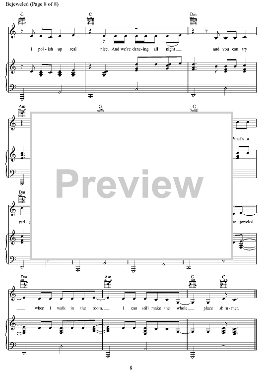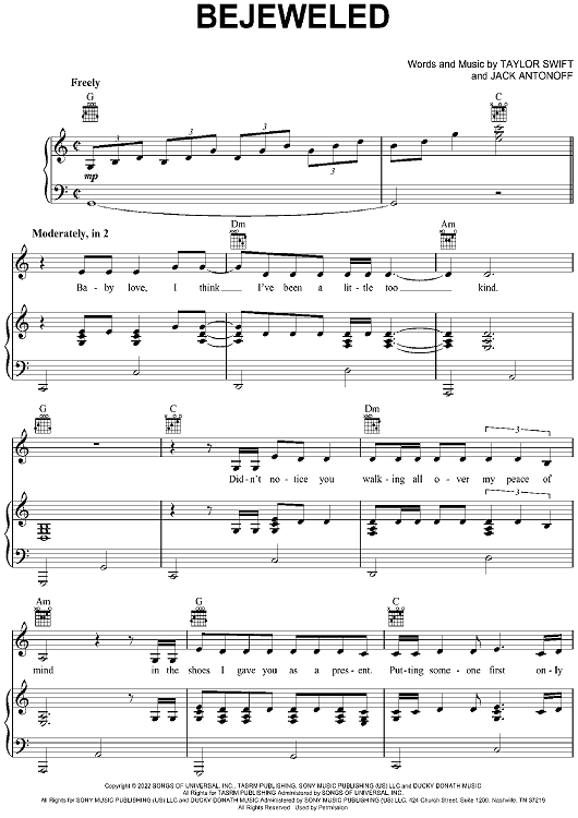 Digital Sheet Music for Bejeweled by Taylor Swift, Jack Antonoff scored for Piano/Vocal/Chords; id:498165