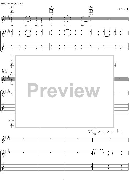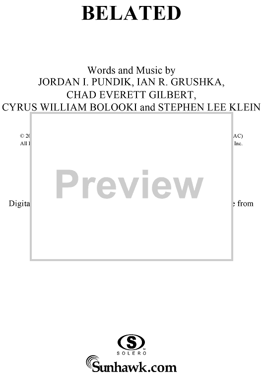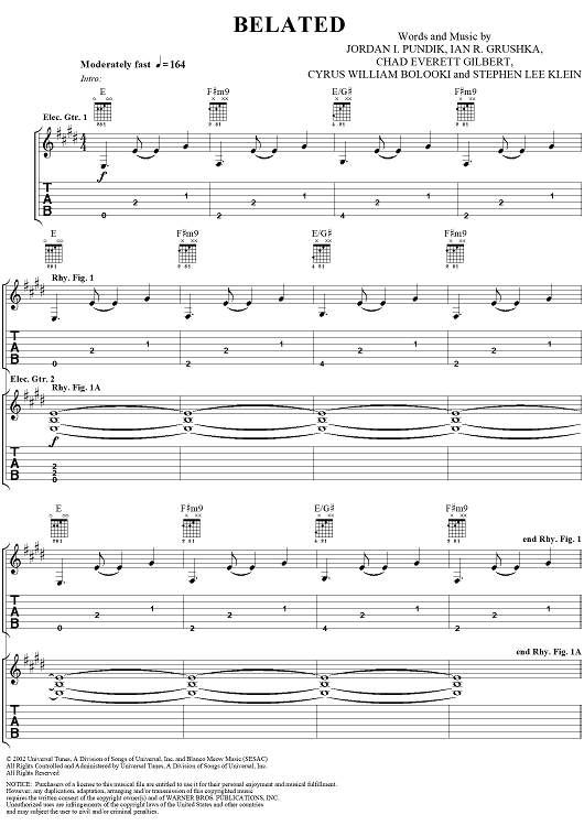 "Belated" Sheet Music by New Found Glory