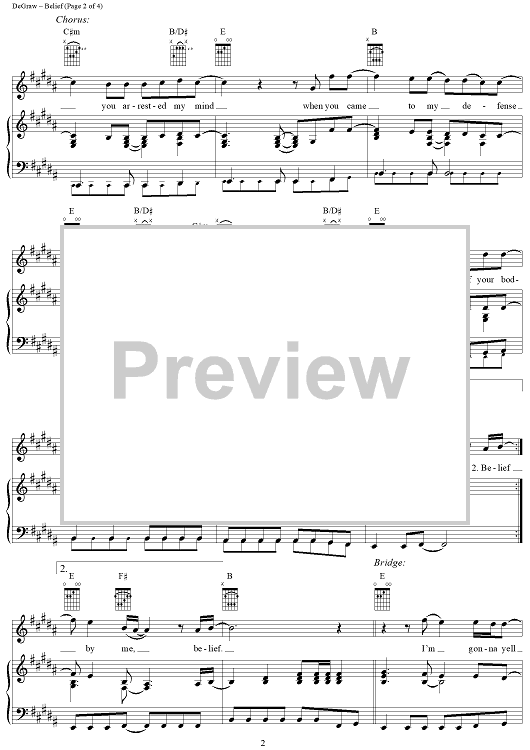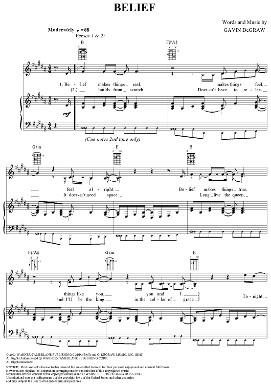 Digital Sheet Music for Belief by Gavin DeGraw scored for Piano/Vocal/Chords; id:361853