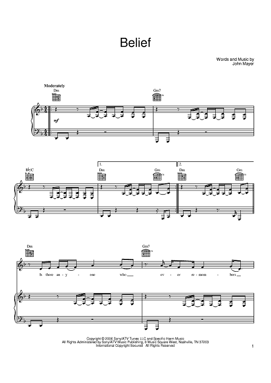 "Belief" Sheet Music by John Mayer