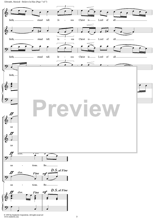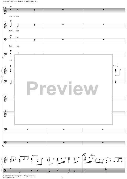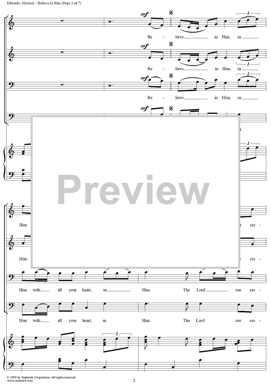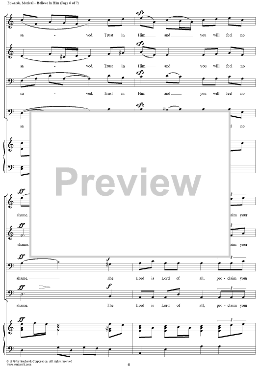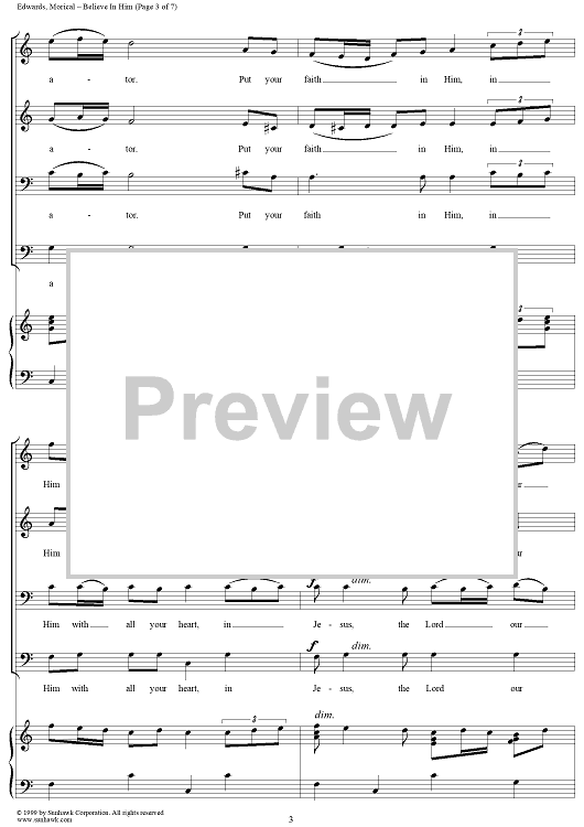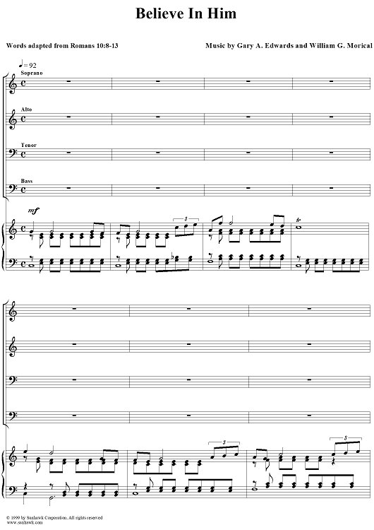 Digital Sheet Music for Believe In Him by Gary A. Edwards, William G. Morical scored for SATB/Piano; id:111810