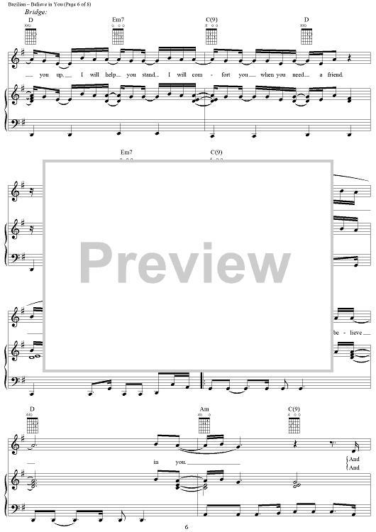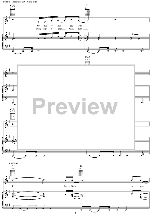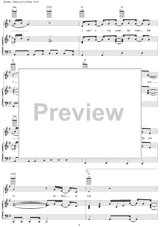 Digital Sheet Music for Believe in You by Amanda Marshall, Eric Bazilian scored for Piano/Vocal/Chords; id:216724