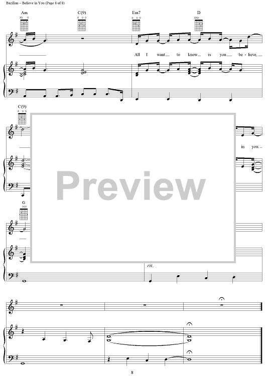 "Believe in You" Sheet Music by Amanda Marshall