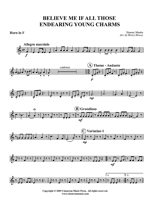 "Believe Me If All Those Endearing Young Charms - Horn in F" Sheet Music by Simone Mantia