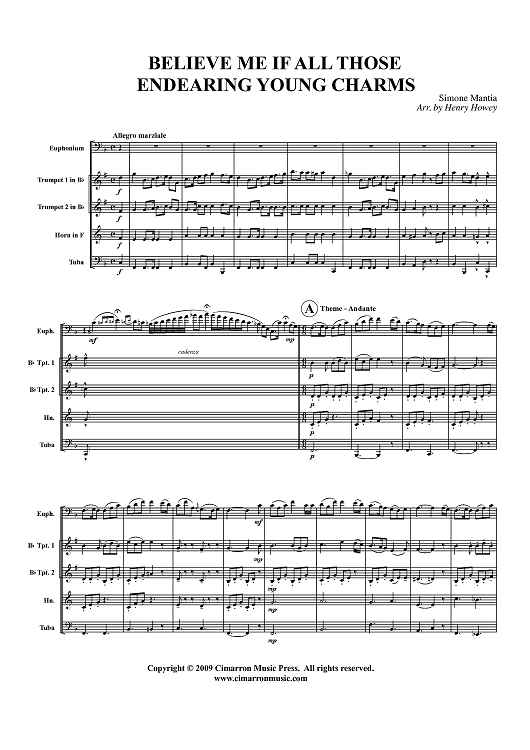 Digital Sheet Music for Believe Me If All Those Endearing Young Charms - Score by Simone Mantia, Henry Howey scored for Brass Quartet; id:416926