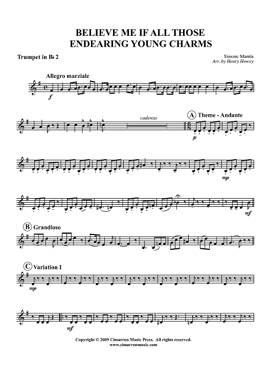 "Believe Me If All Those Endearing Young Charms - Trumpet 2 in Bb" Sheet Music by Simone Mantia