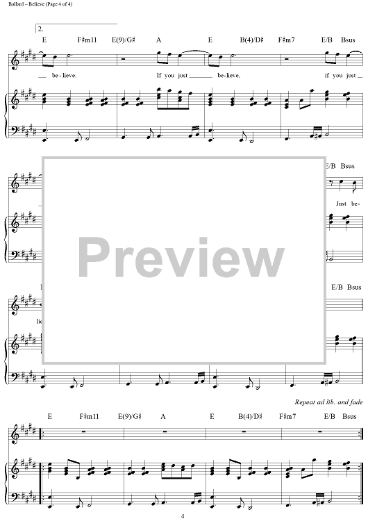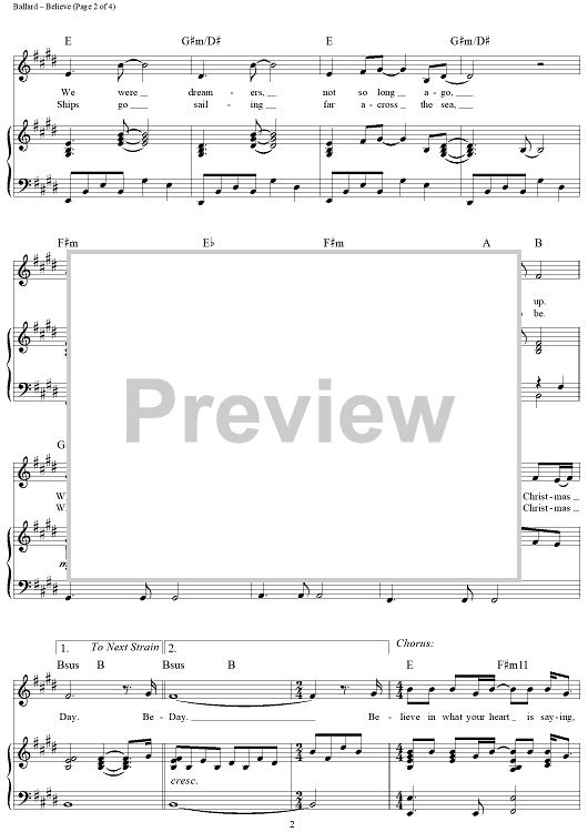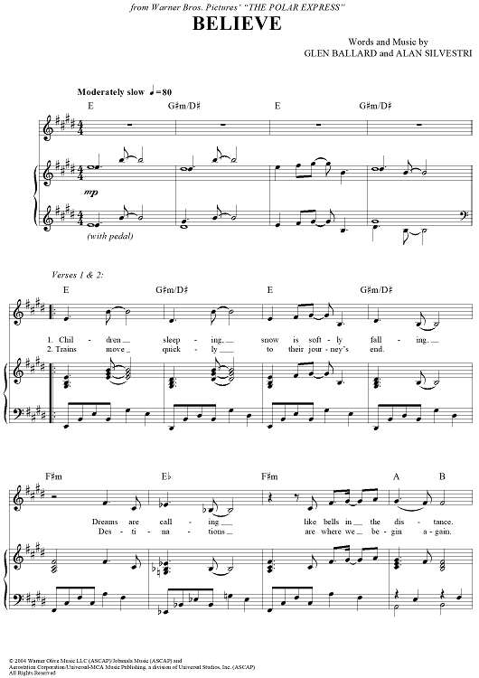 Digital Sheet Music for Believe by Glen Ballard, Alan Silvestri, Josh Groban scored for Piano/Vocal/Chords; id:307595