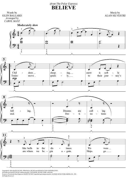 "Believe" Sheet Music by Alan Silvestri