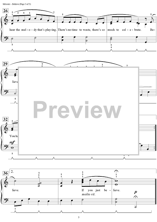Digital Sheet Music for Believe by Glen Ballard, Alan Silvestri, Carol Matz scored for Piano; id:453851