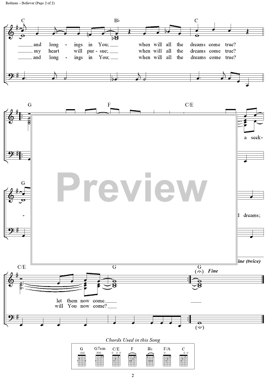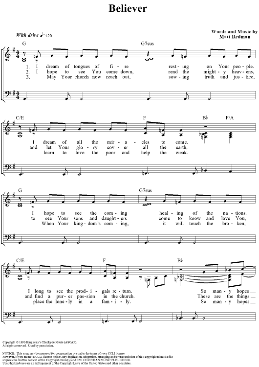 Digital Sheet Music for Believer by Matt Redman scored for Piano/Vocal/Chords; id:109586