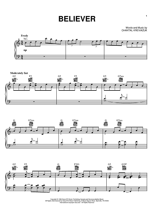 Digital Sheet Music for Believer by Chantal Kreviazuk scored for Piano/Vocal/Chords; id:395751