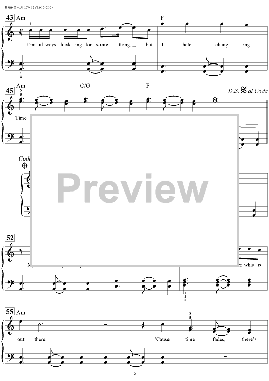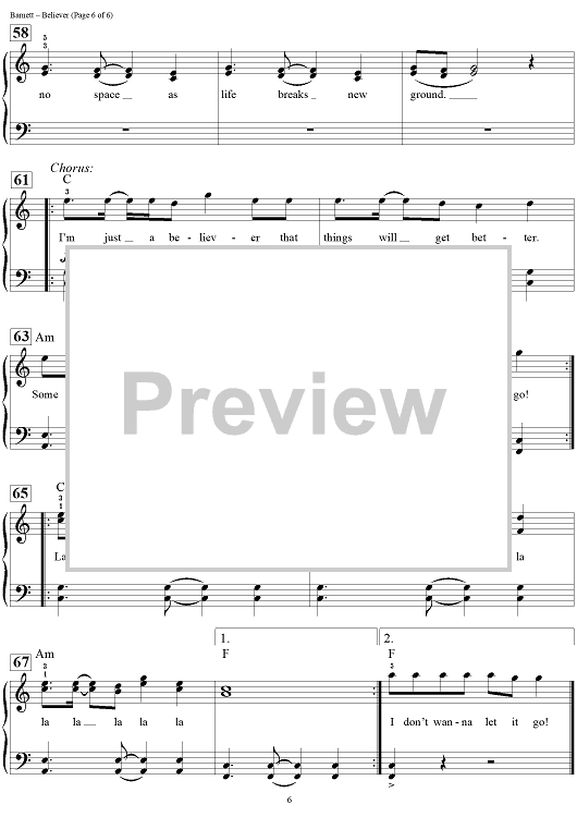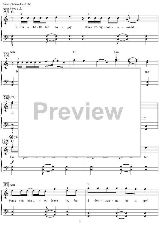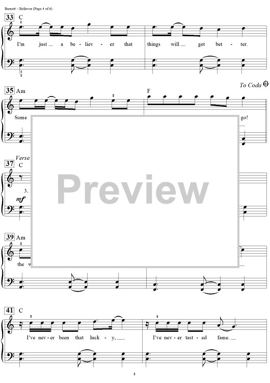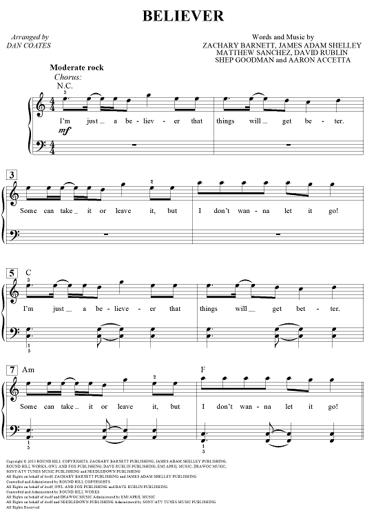 Digital Sheet Music for Believer by Dan Coates, Shep Goodman, Zachary Barnett, James Adam Shelley, Matthew Sanchez, David Rublin, Aaron Accetta scored for Easy Piano/Vocal/Chords; id:453448