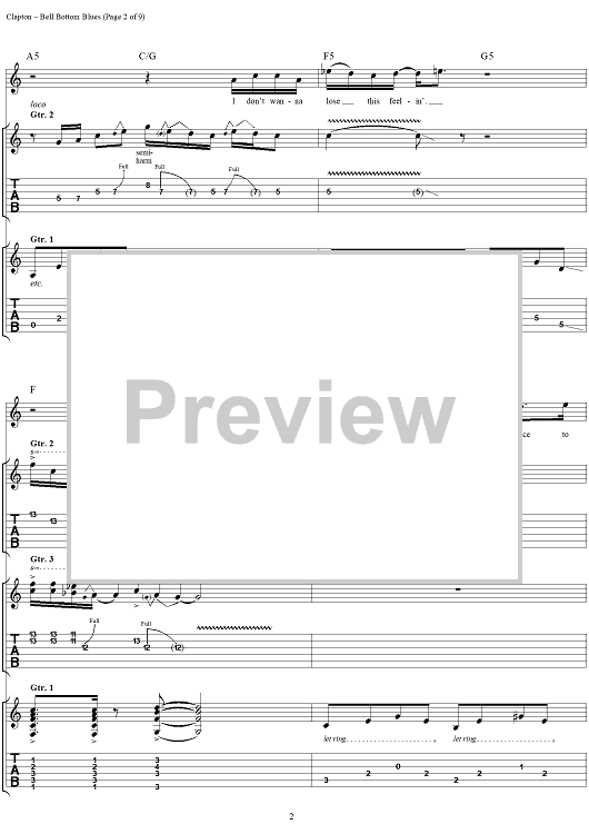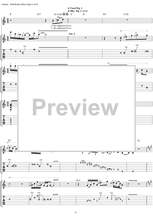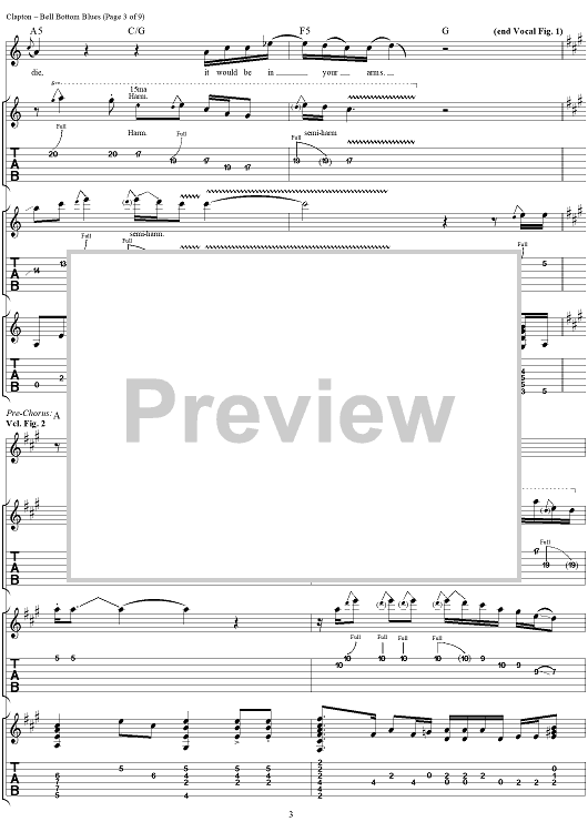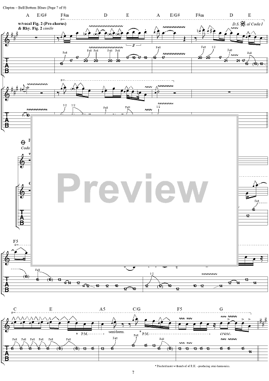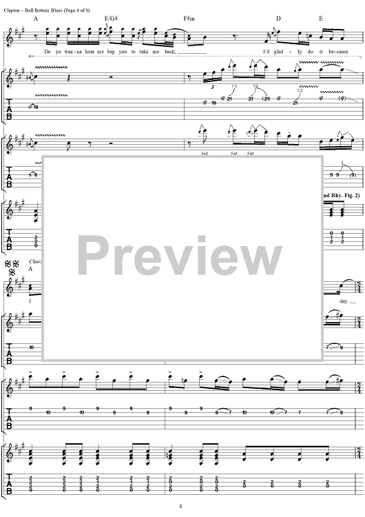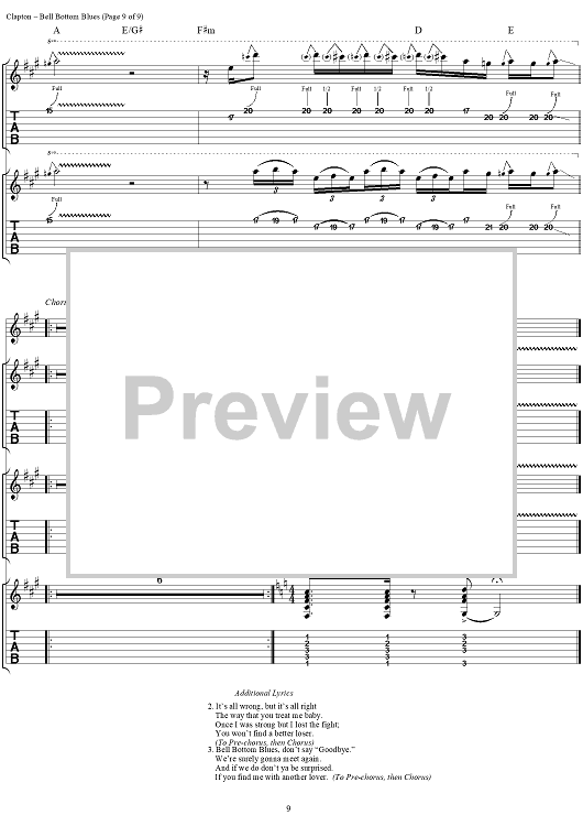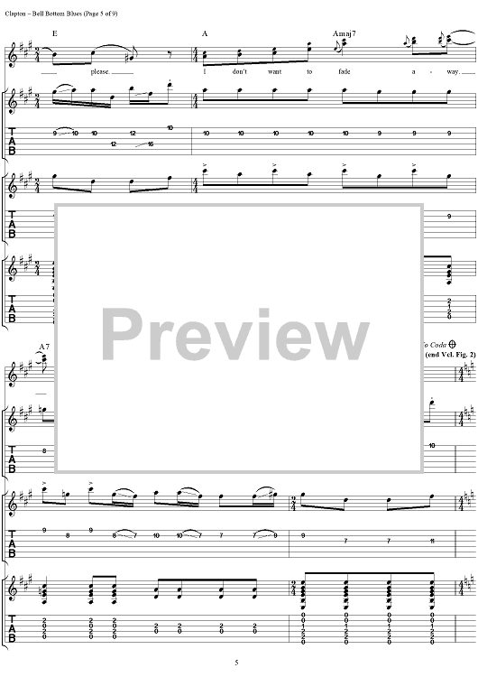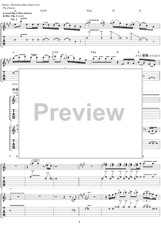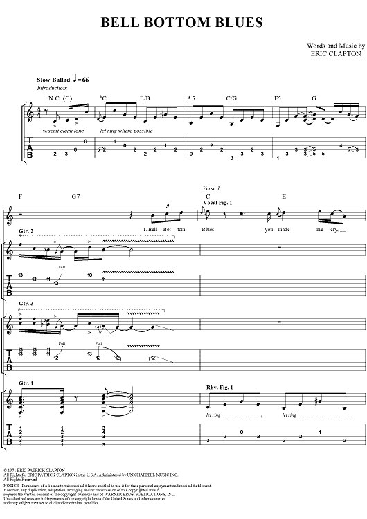 "Bell Bottom Blues" Sheet Music by Eric Clapton