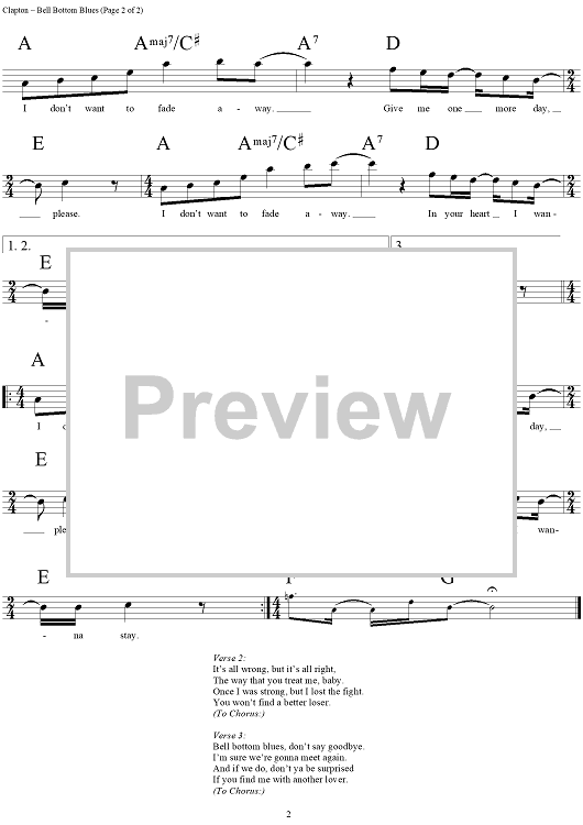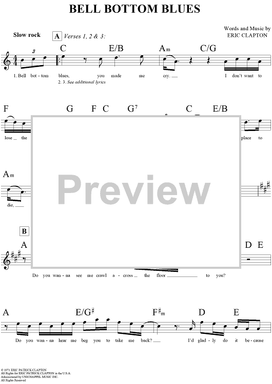 Digital Sheet Music for Bell Bottom Blues by Eric Clapton scored for Lead Sheet; id:290797