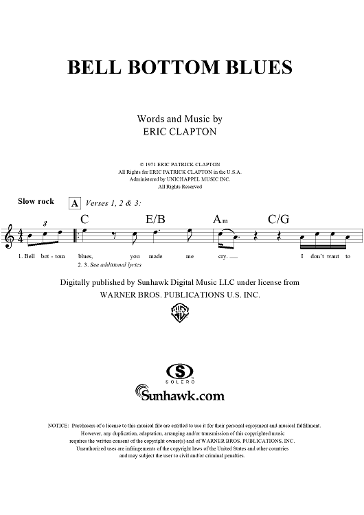 "Bell Bottom Blues" Sheet Music by Eric Clapton