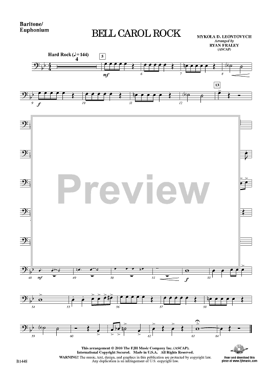 Digital Sheet Music for Bell Carol Rock - Baritone/Euphonium by Ryan Fraley, Mykola D. Leontovych scored for Developing Band; id:415278