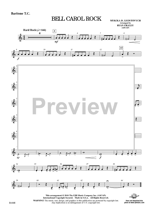 Digital Sheet Music for Bell Carol Rock - Baritone TC by Ryan Fraley, Mykola D. Leontovych scored for Developing Band; id:415279