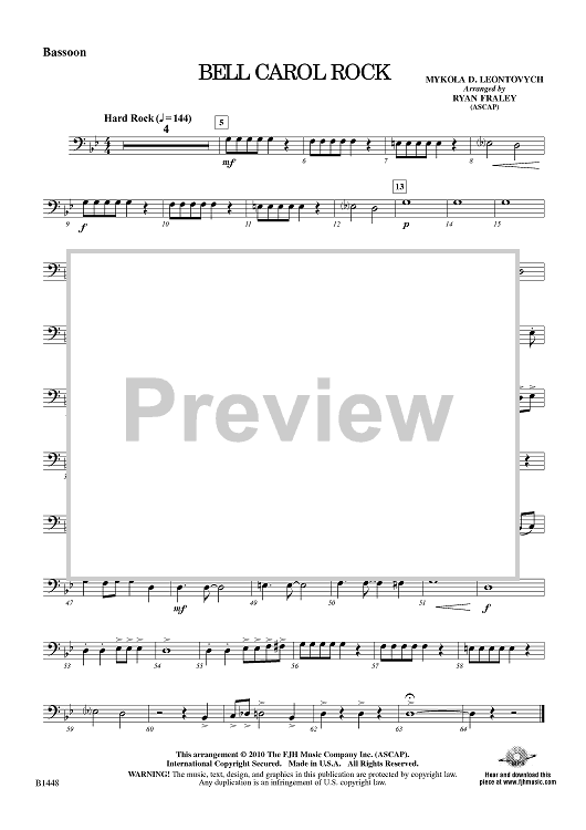 Digital Sheet Music for Bell Carol Rock - Bassoon by Ryan Fraley, Mykola D. Leontovych scored for Developing Band; id:415267