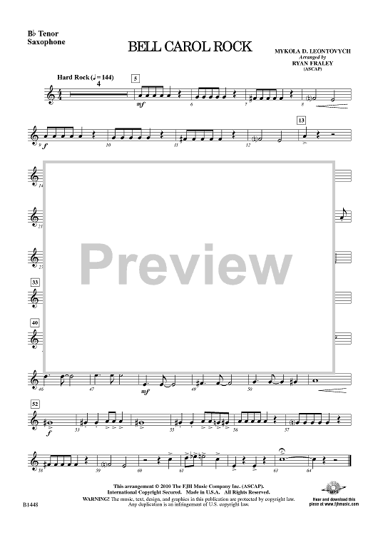 Digital Sheet Music for Bell Carol Rock - Bb Tenor Sax by Ryan Fraley, Mykola D. Leontovych scored for Developing Band; id:415272