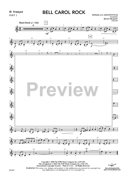 Digital Sheet Music for Bell Carol Rock - Bb Trumpet Part 2 by Ryan Fraley, Mykola D. Leontovych scored for Concert Band; id:499061
