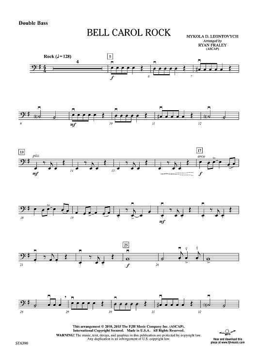 Digital Sheet Music for Bell Carol Rock - Double Bass by Ryan Fraley, Mykola D. Leontovych scored for Orchestra; id:455645