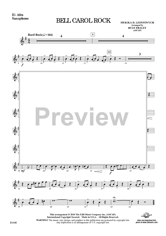 Digital Sheet Music for Bell Carol Rock - Eb Alto Sax by Ryan Fraley, Mykola D. Leontovych scored for Developing Band; id:415271
