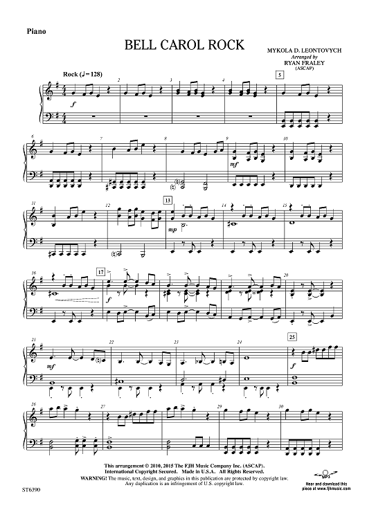 Digital Sheet Music for Bell Carol Rock - Rehearsal Piano by Ryan Fraley, Mykola D. Leontovych scored for Orchestra; id:455646