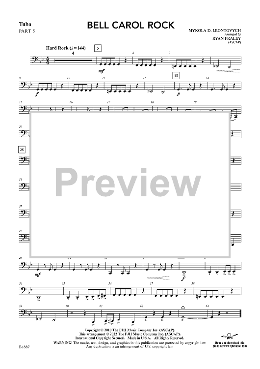 Digital Sheet Music for Bell Carol Rock - Tuba Part 5 by Ryan Fraley, Mykola D. Leontovych scored for Concert Band; id:499079