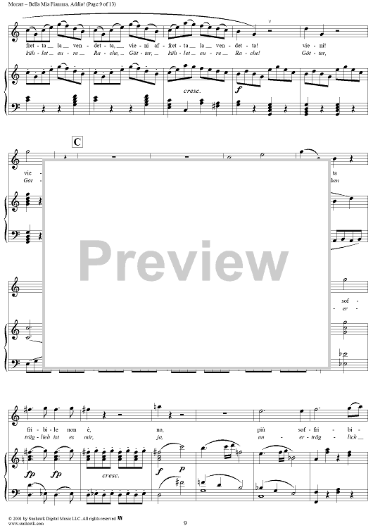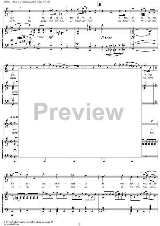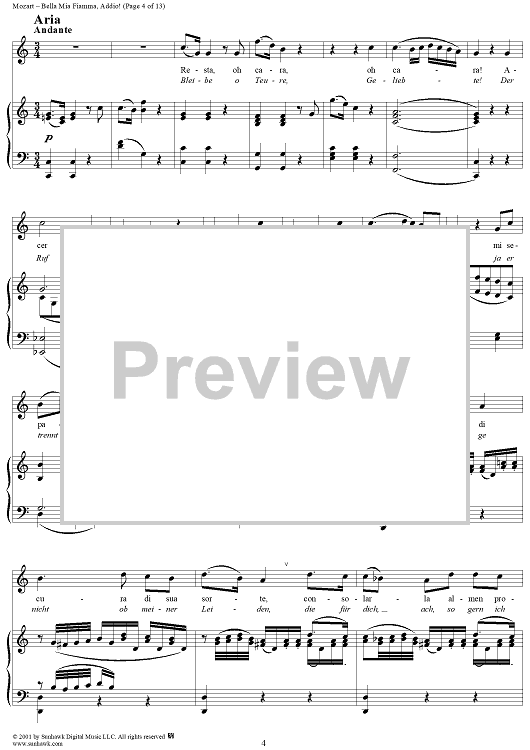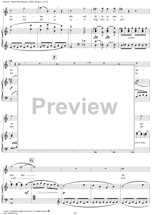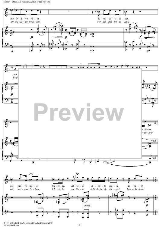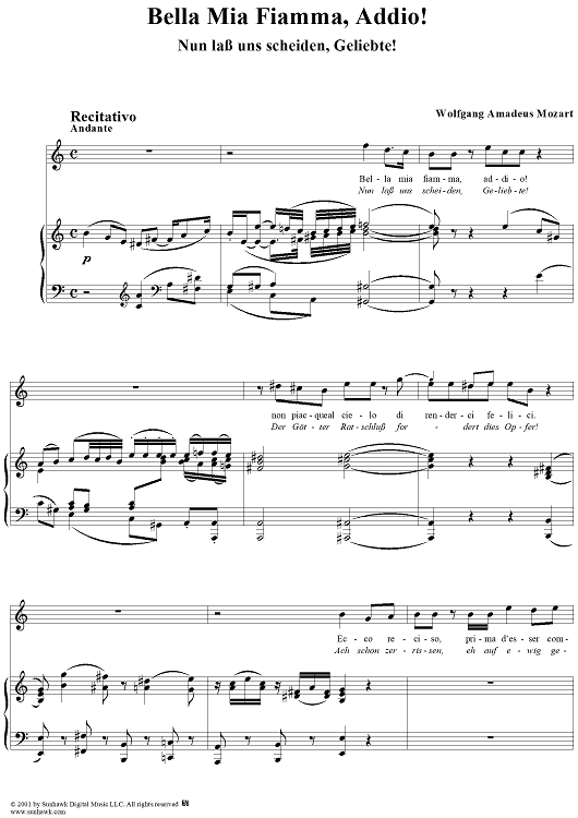 "Bella mia fiamma, addio! (Nun lass uns scheiden, Geliebte!), rec. and aria" Sheet Music by Wolfgang Amadeus Mozart