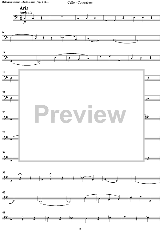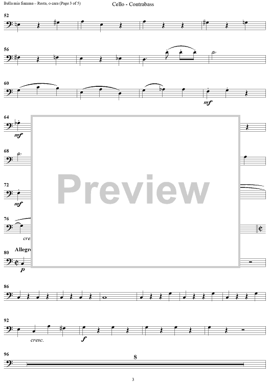 Digital Sheet Music for "Bella mia fiamma", scena and "Resta, o cara", aria, K528 - Cello/Bass by Wolfgang Amadeus Mozart scored for Soprano/Orchestra; id:467945