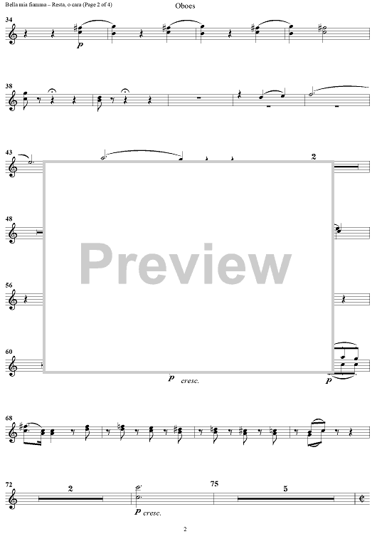 Digital Sheet Music for "Bella mia fiamma", scena and "Resta, o cara", aria, K528 - Oboes by Wolfgang Amadeus Mozart scored for Soprano/Orchestra; id:467941
