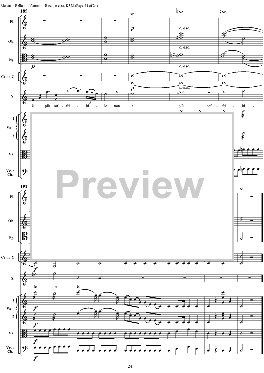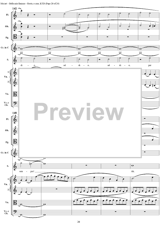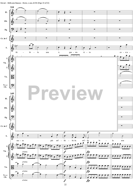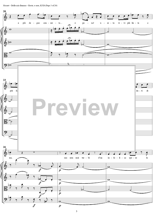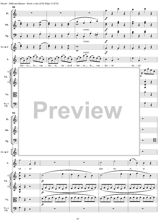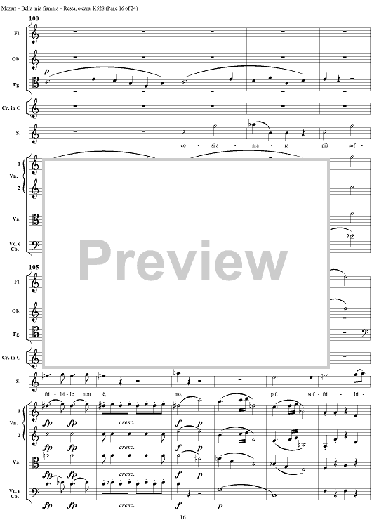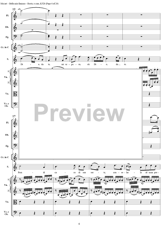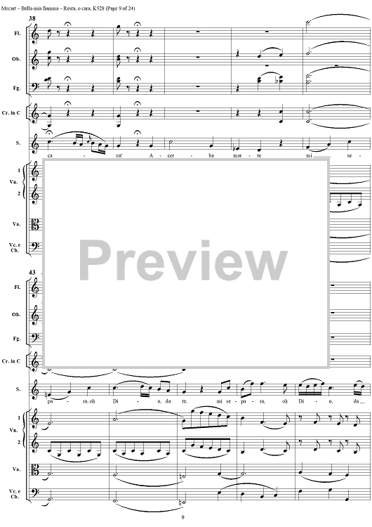 Digital Sheet Music for "Bella mia fiamma", scena and "Resta, o cara", aria, K528 - Score by Wolfgang Amadeus Mozart scored for Soprano/Orchestra; id:264145