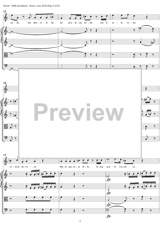 ""Bella mia fiamma", scena and "Resta, o cara", aria, K528 - Score" Sheet Music by Wolfgang Amadeus Mozart