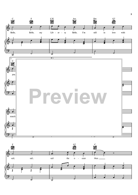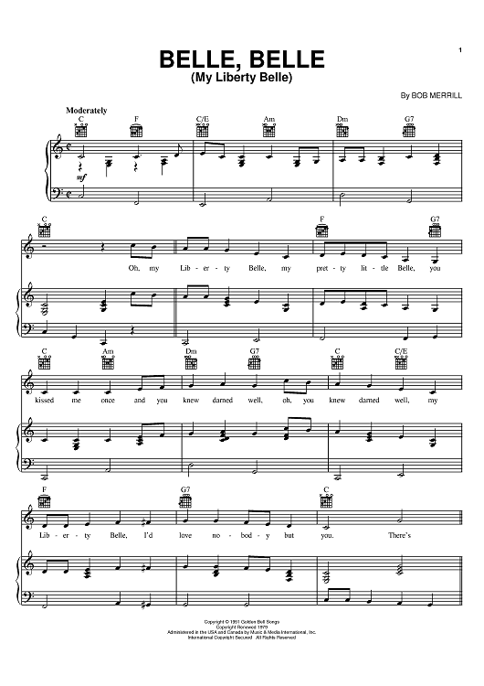 Digital Sheet Music for Belle, Belle (My Liberty Belle) by Bob Merrill scored for Piano/Vocal/Chords; id:395055