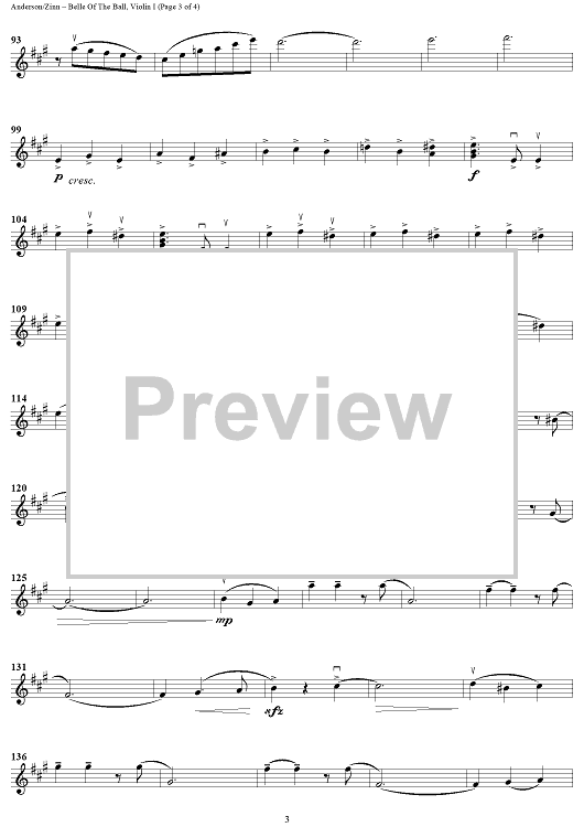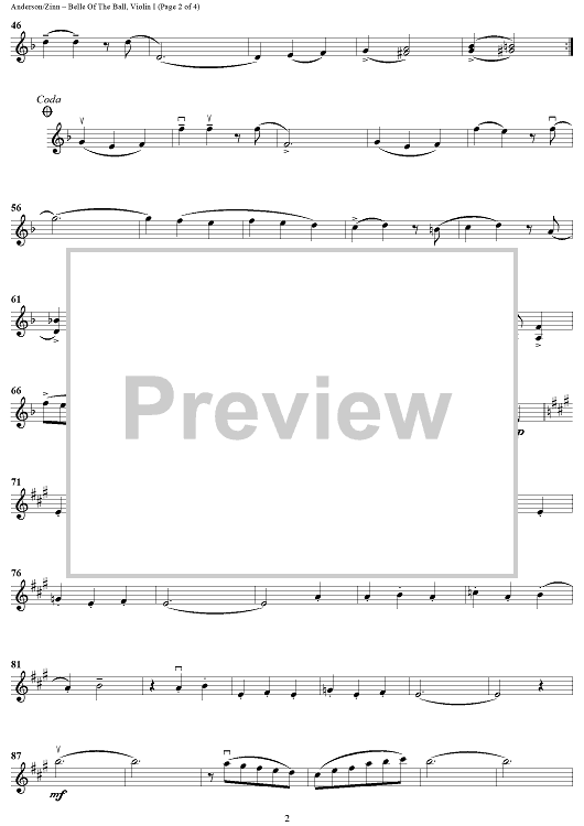 Digital Sheet Music for Belle Of The Ball - Violin 1 by Leroy Anderson, William Zinn scored for String Ensemble; id:434263