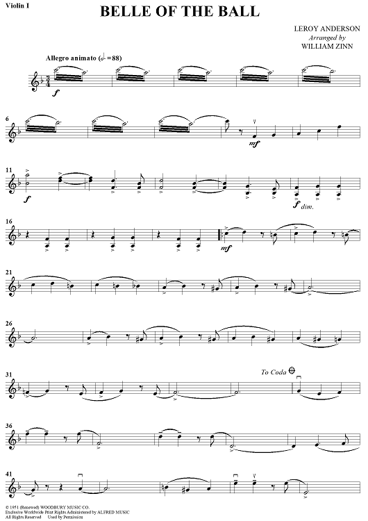 "Belle Of The Ball - Violin 1" Sheet Music by Leroy Anderson