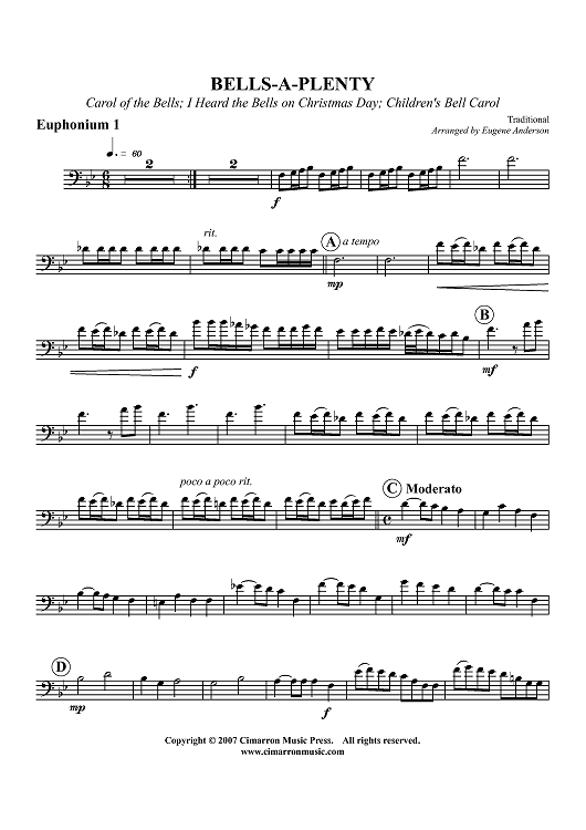 "Bells a-Plenty - Euphonium 1 BC/TC" Sheet Music by Traditional