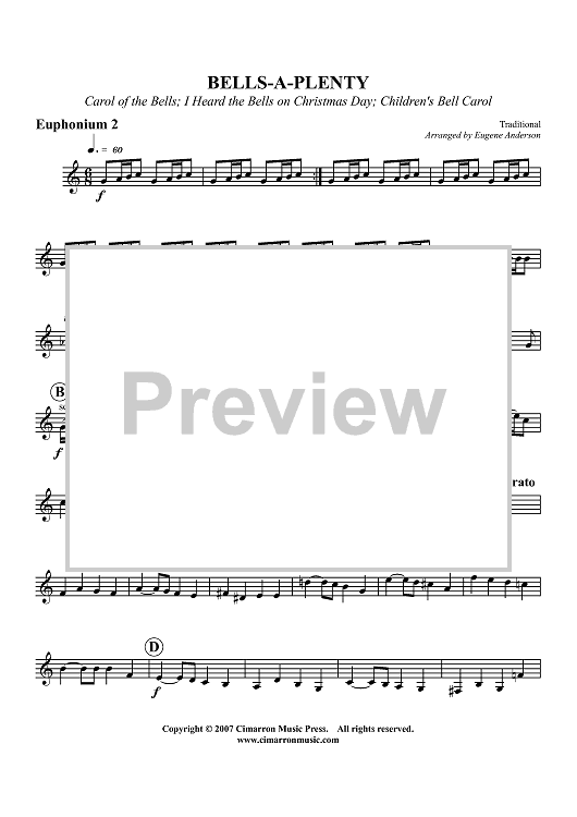 Digital Sheet Music for Bells a-Plenty - Euphonium 2 BC/TC by , Eugene Anderson, Traditional scored for Tuba Quartet; id:416707