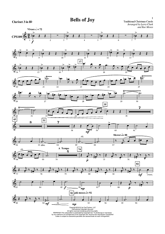 "Bells of Joy - Clarinet 3 in B-flat" Sheet Music by Traditional