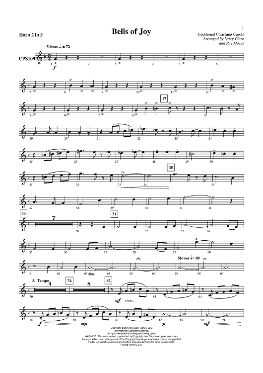 "Bells of Joy - Horn 2 in F" Sheet Music by Traditional