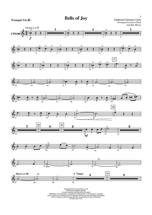 "Bells of Joy - Trumpet 2 in Bb" Sheet Music by Traditional