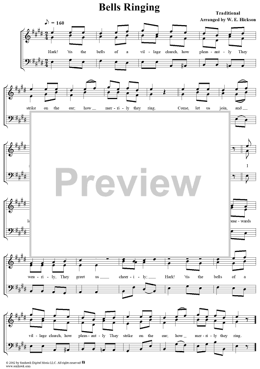 Digital Sheet Music for Bells Ringing by William E. Hickson, Traditional scored for Three-part Mixed Chorus; id:260449
