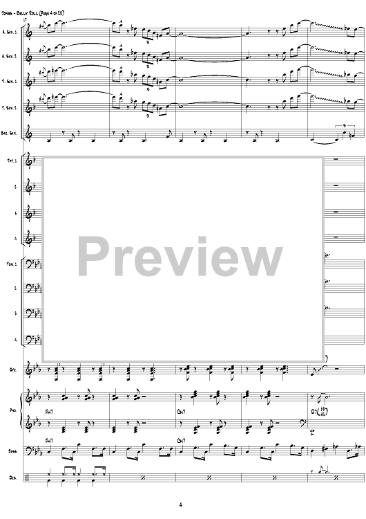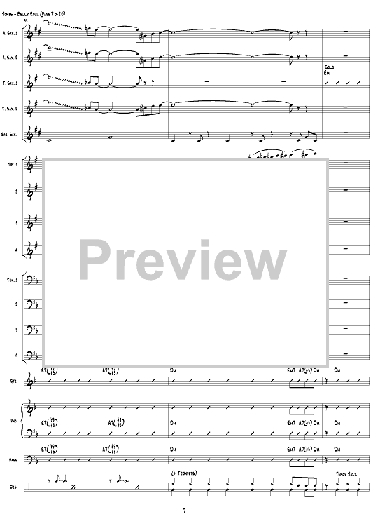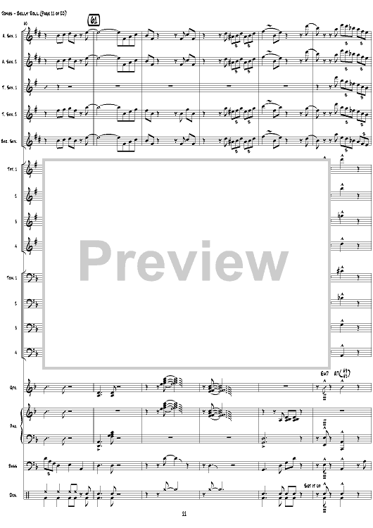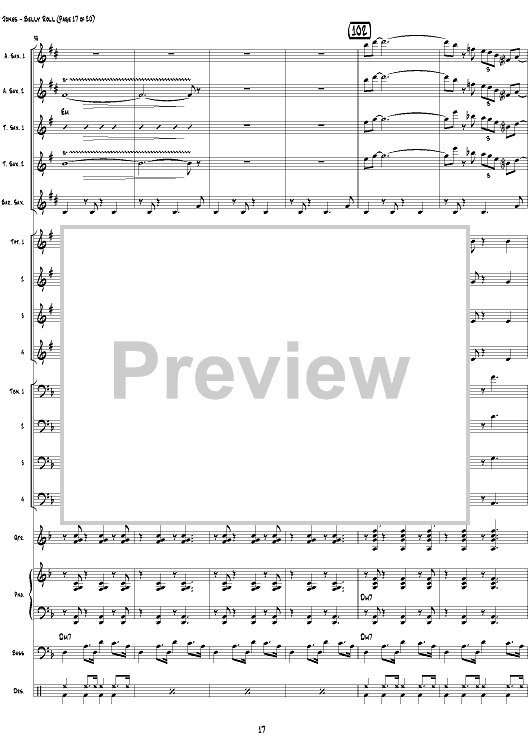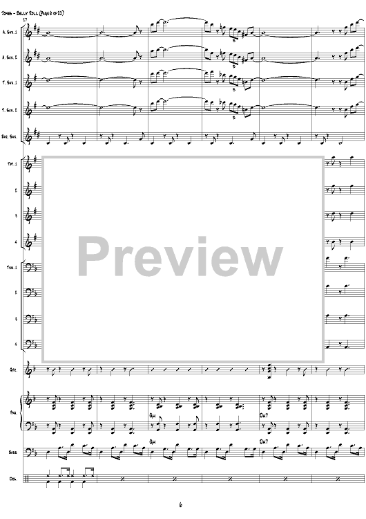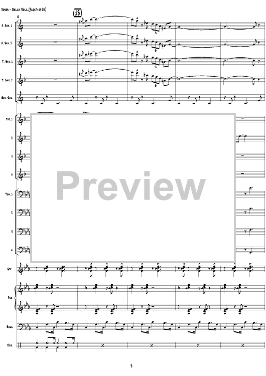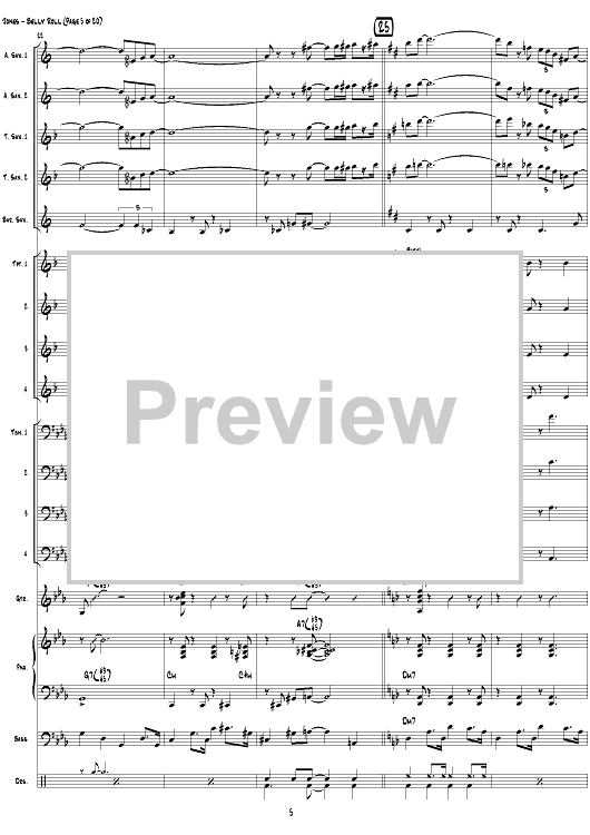 Digital Sheet Music for Belly Roll (The Boy in the Tree) - Conductor's Score by Sammy Nestico, Quincy Jones scored for Jazz Ensemble; id:309992