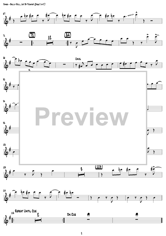 Digital Sheet Music for Belly Roll (The Boy in the Tree) - Trumpet 1 by Sammy Nestico, Quincy Jones scored for Jazz Ensemble; id:309998