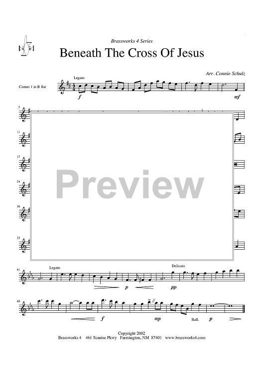 Digital Sheet Music for Beneath the Cross of Jesus - Cornet 1/Trumpet 1 by Connie Schulz scored for Brass Quartet; id:316593