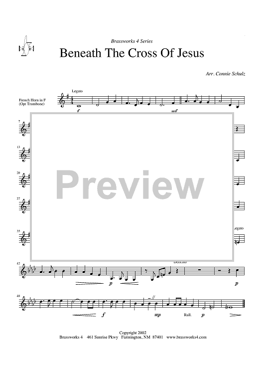 Digital Sheet Music for Beneath the Cross of Jesus - Horn in F by Connie Schulz scored for Brass Quartet; id:316596