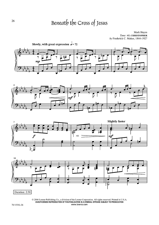 Digital Sheet Music for Beneath the Cross of Jesus by Mark Hayes, Frederick C. Maker scored for Piano Solo; id:433350