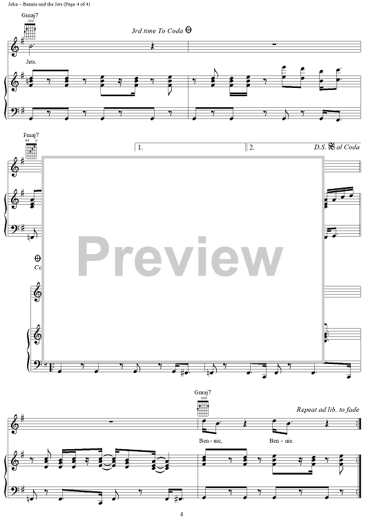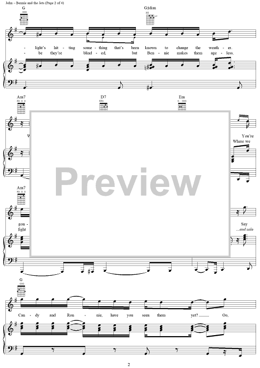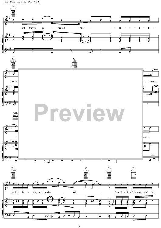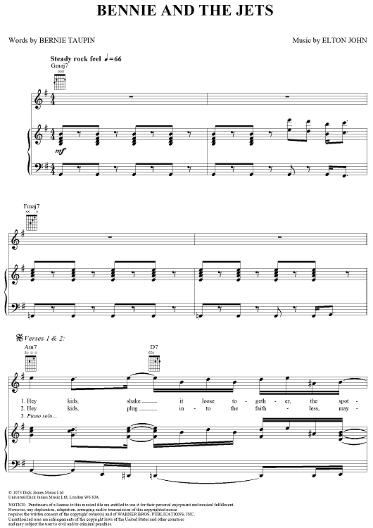 Digital Sheet Music for Bennie and The Jets by Elton John, Bernie Taupin scored for Piano/Vocal/Chords; id:297437